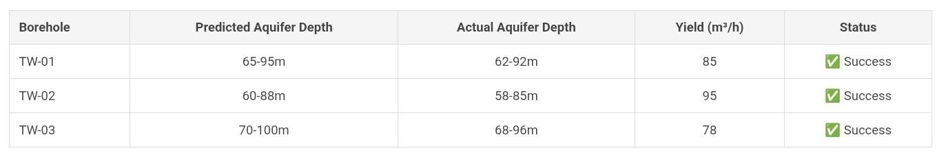Drilling Success Rate: 100% (3/3 boreholes productive)