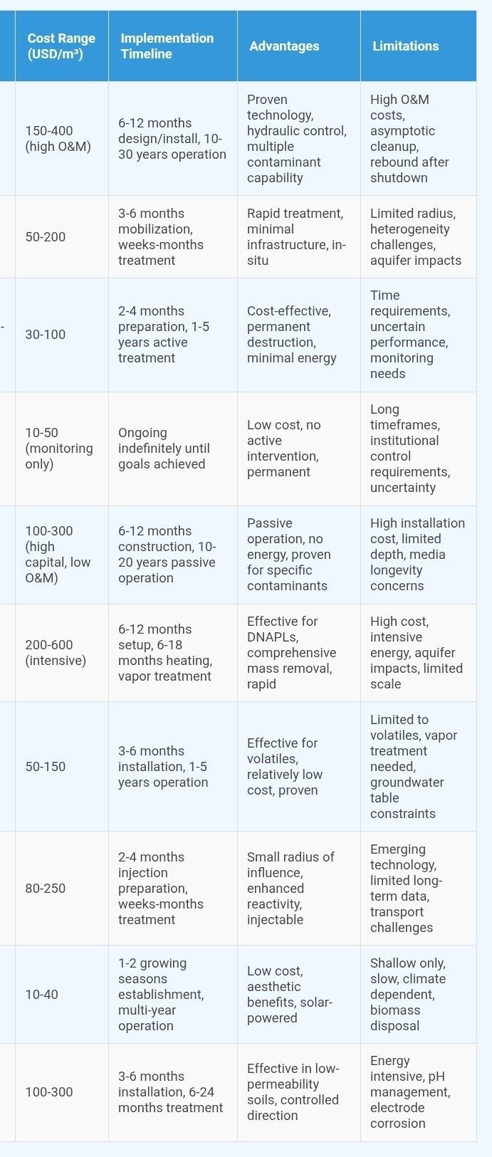 • Cost Optimization Frameworks: Life-cycle cost analysis demonstrates in-situ technologies typically cost 40-60% less than pump-and-treat for equivalent cleanup (USD 50-200 per cubic meter versus USD 150-400), while technical impracticability waivers provide pathway for sites where restoration to drinking water standards proves economically or technically infeasible within reasonable timeframe