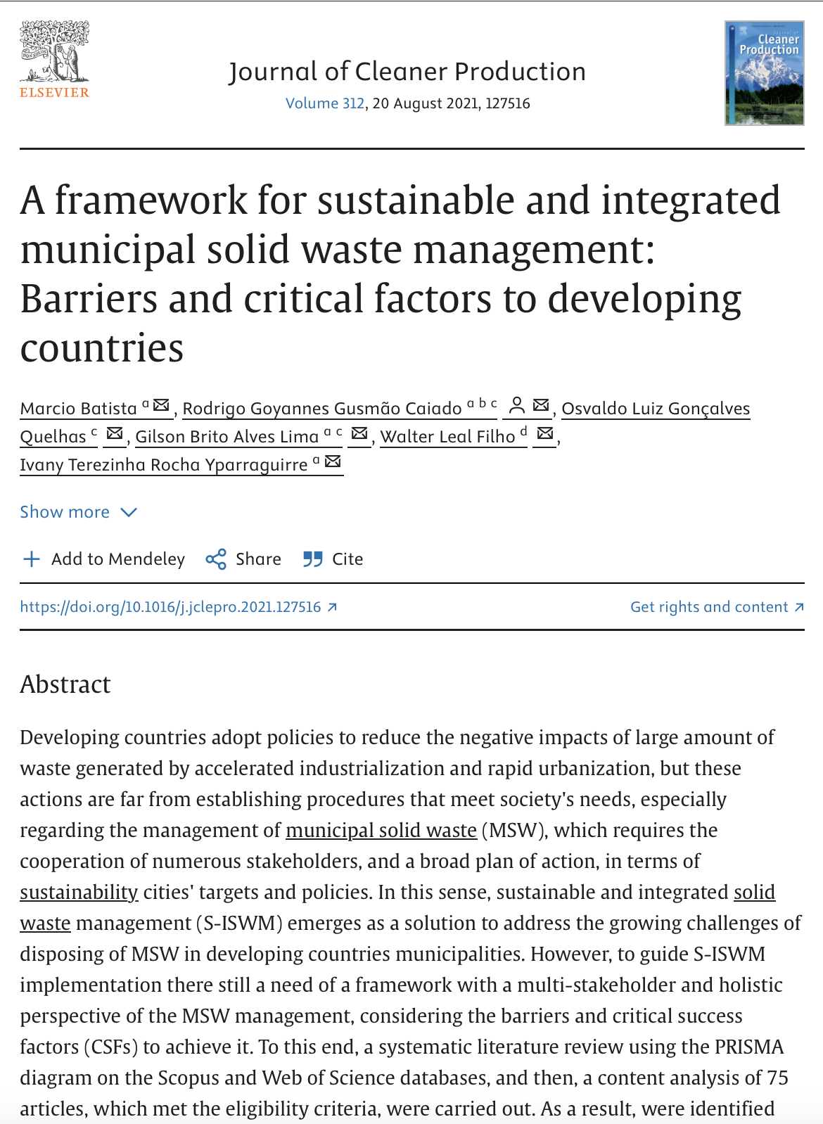 Framework for Sustainable and Integrated Municipal Solid Waste Management (Journal of Cleaner Production, 2021) |